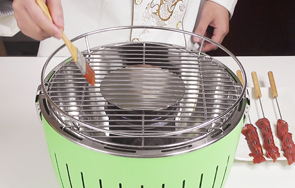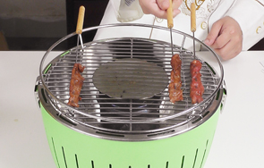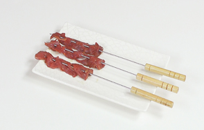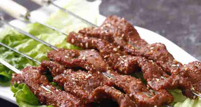 腌渍过的牛肉,均匀覆盖着橘黄色的沙嗲,取几串,轻轻甩干多余的酱汁,使烤出来的牛肉焦嫩适度,味浓微甜。