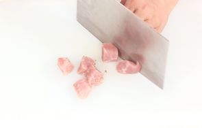 将洗净的瘦肉切条,再切大块。