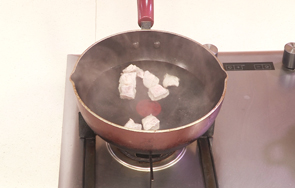 锅中注入适量清水烧开,倒入瘦肉块,拌匀。