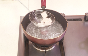 汆约2分钟,去除血渍,捞出材料,沥干水分,待用。
