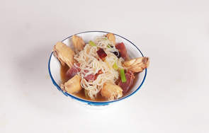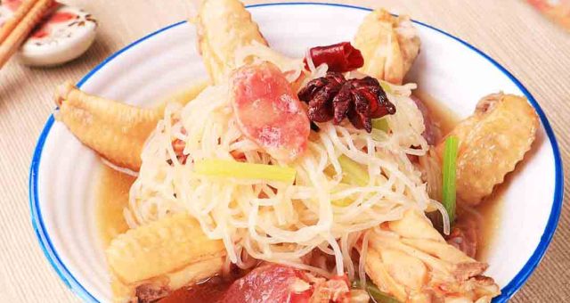 魔芋切丝炖鸡肉,腊肠相伴味道浓!