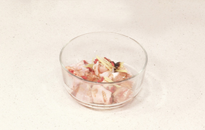 撒上干淀粉,搅拌均匀,腌渍约10分钟,待用。