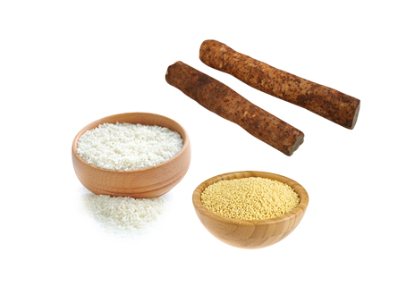 小米味甘、咸,性凉,入脾、胃、肾经,补脾胃,山药味甘,性温。补而不滞,不热不燥,能健脾益胃、助消化。山药含有淀粉酶、多酚氧化酶等物质,有利于脾胃消化吸收功能,是一味平补脾胃的药食两用之品。不论脾阳亏或胃阴虚,皆可食用。