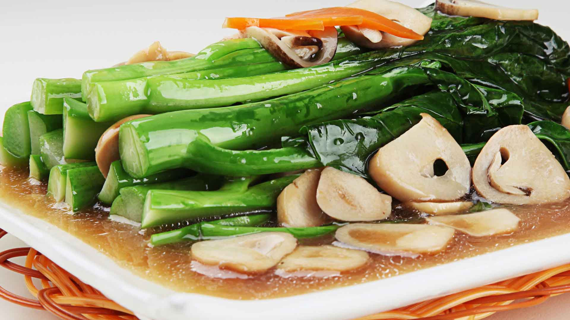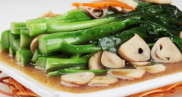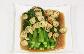 脆嫩的芥蓝,滑溜的草菇,带着微微肉味,健康素菜也能很下饭。