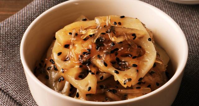 黑芝麻拌莲藕石花菜口感脆爽,咸香可口,吃起来相当开胃哦!