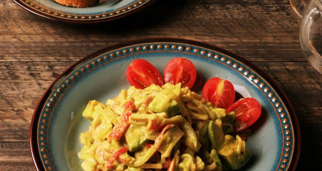 这道牛油果蟹肉棒沙拉是一道味道浓郁的异国料理,牛油果的天然油脂香和蟹肉棒的鲜味巧妙融合,放点咖喱粉、黑胡椒等调料,搭配面包一起吃,更显香美。