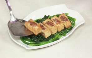 什么菜能迎合所有人的口味,煎酿豆腐似乎还真能做到,豆腐与猪肉的完美契合,滑嫩鲜美,再浇上薄薄香汁,谁吃了都会打高分!