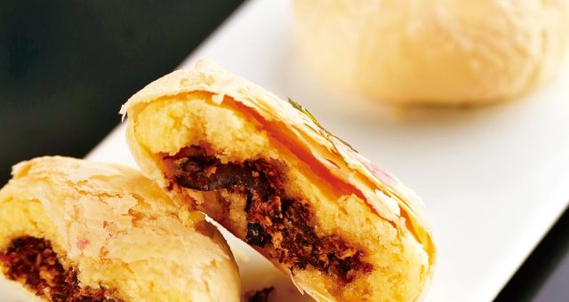 这款甜品所用的原材料全部为素食,有香菇、豆皮、绿豆馅等。