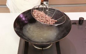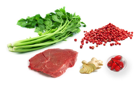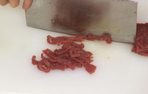 牛肉烹饪前,可用冷水浸泡两小时,这样既能去除牛肉中的血水,也可去除腥味。