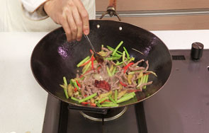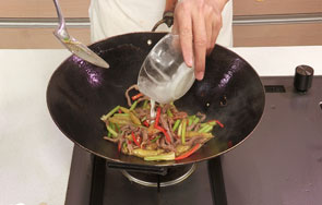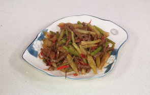 牛肉丝加食粉、生抽、盐、味精拌匀,再加水淀粉拌匀,倒入食用油腌渍10分钟。