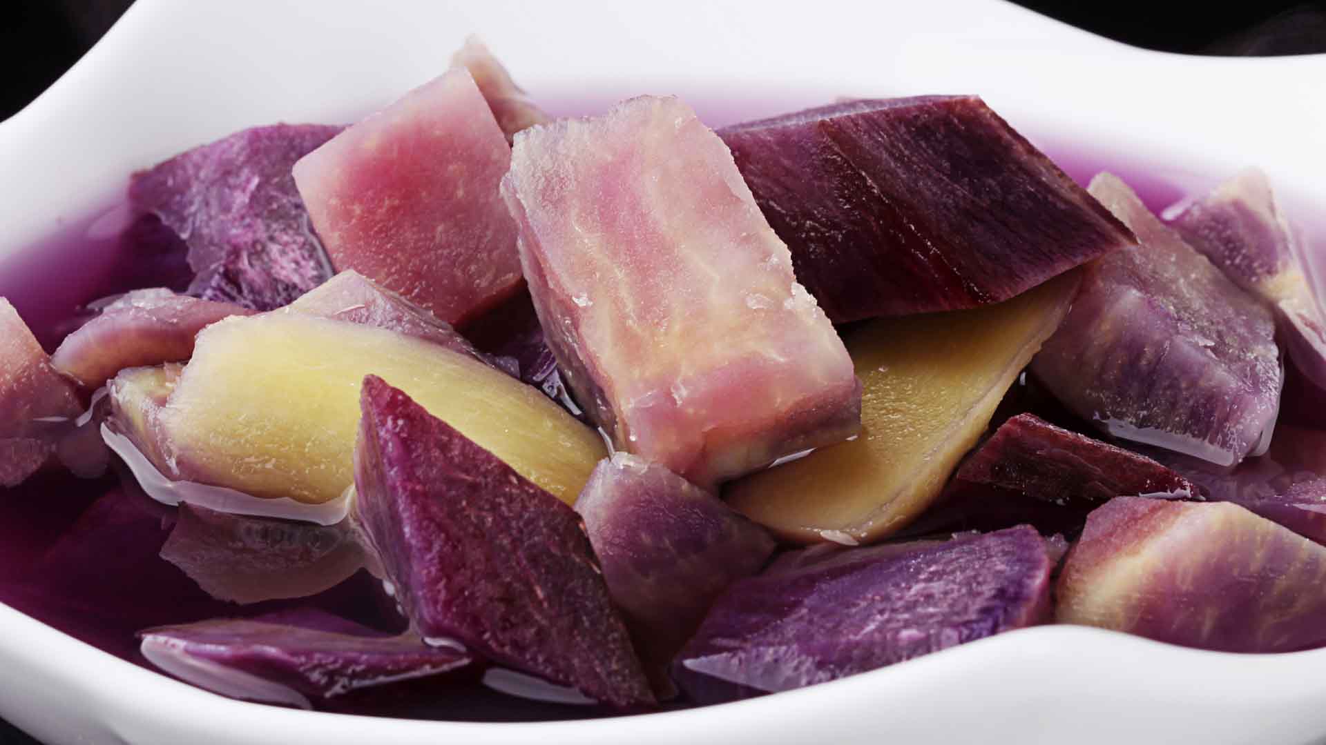 紫薯富含硒元素和花青素,而花青素对100多种疾病有预防和治疗作用,配合祛寒的老姜,其营养价值十分高。