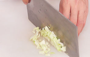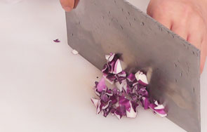 洗净的紫甘蓝切成条,再切成小块,备用。