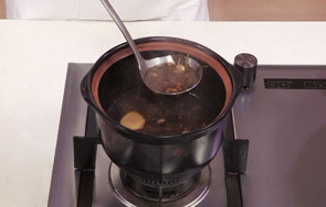 揭盖,搅拌匀,关火后盛出煮好的药茶。