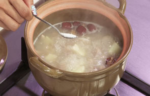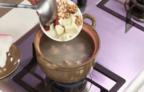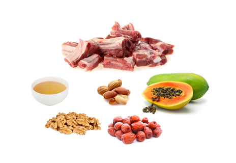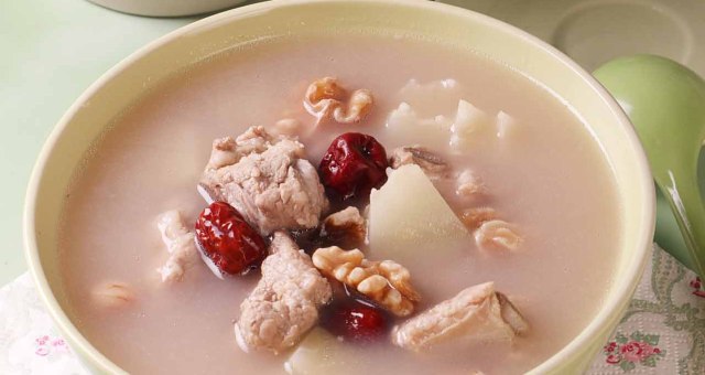 这款排骨汤汤鲜味美,食材丰富,有益智、促消化的木瓜,有补血的红枣,有促进发育的花生,有健脑的核桃,排骨汤还有补钙作用,适合儿童食用。