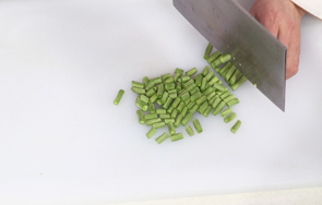 洗好的豆角切成小段。