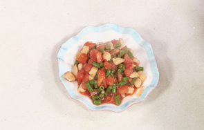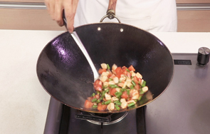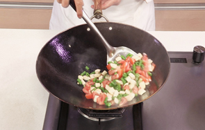 放入西红柿丁,炒至变软。
