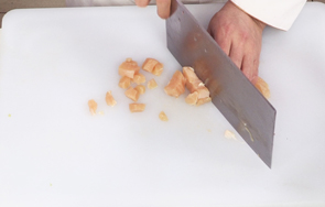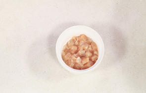 洗好的鸡胸肉切粗丝,改切成丁。
