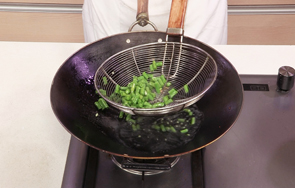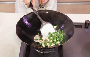 放入蒜末、葱段,翻炒均匀。