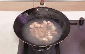 淋入适量料酒,汆去血水。