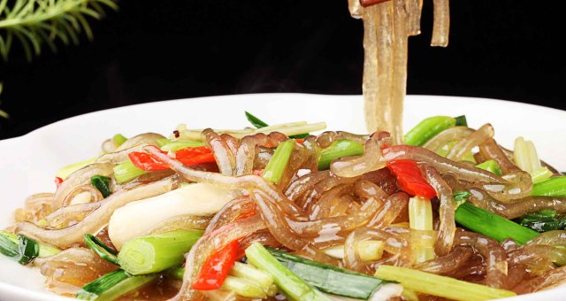 红薯粉条富含人体所需要的铁、钾、锌等营养元素,具有软化血管、提高食欲、润肌肤、美容颜、润肠通便、防肠癌之功效。