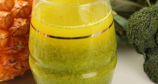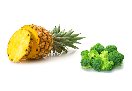 只喝菠萝汁还是有点酸酸的,可以加上西蓝花中和一下,更好地达到减肥美容的效果。