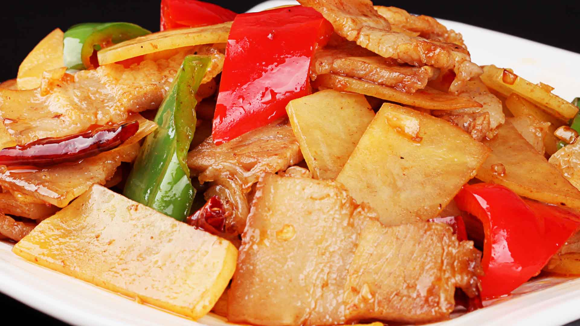 这道回锅土豆片,不光有土豆,还有五花肉,经过二次入锅,土豆软糯,五花肉酥软,还有青红椒调味,口感丰富,非常下饭呢